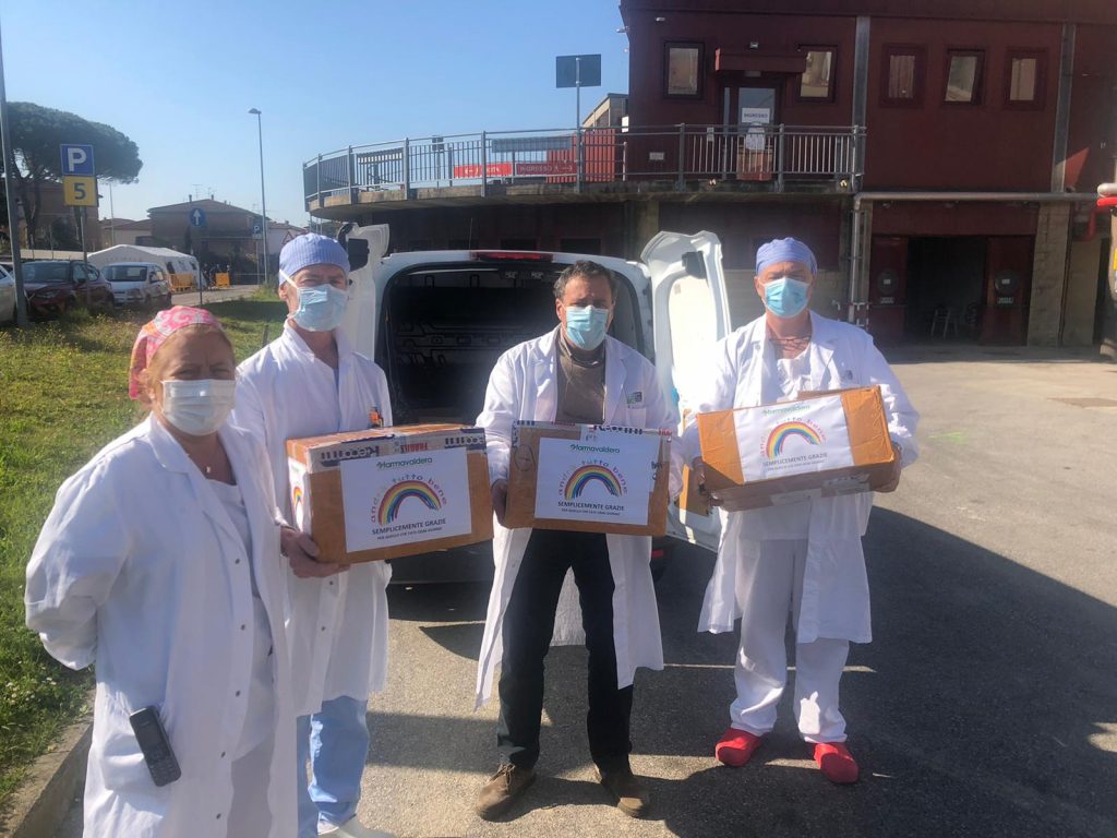 Un piccolo contributo – dichiara Simone Chiaverini, presidente del CdA di Farmavaldera, che ha consegnato le mascherine al direttore del Presidio dr. Luca Nardi- quale riconoscimento dell’incessante sforzo del personale sanitario, quotidianamente impegnato ad affrontare l’emergenza epidemiologica causata dal Covid-19, a tutela della sua sicurezza. Sulle confezioni un messaggio augurale preparato dai nostri farmacisti.